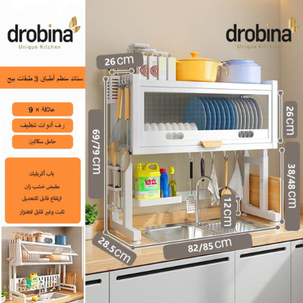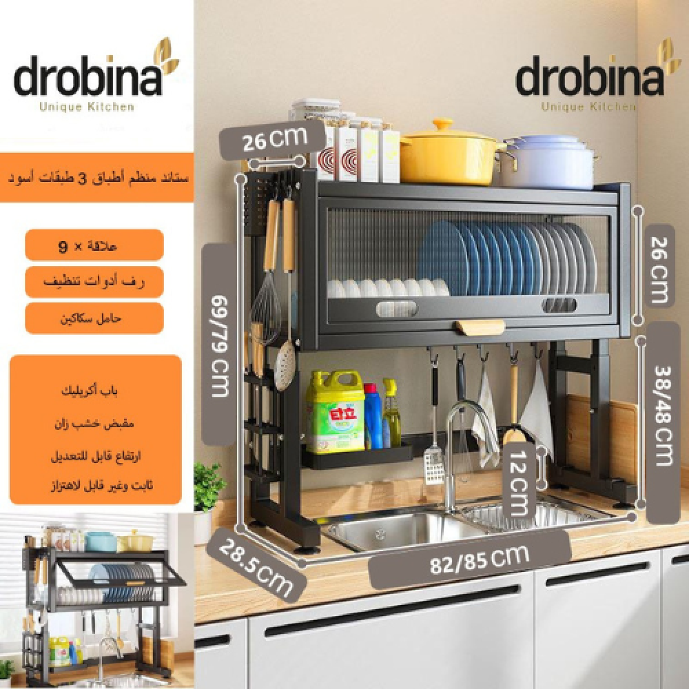 احصل على مطبخ مرتب ومنظم مع رف المطبخ المعدني العصري من دروبينا الذي يتميز بتصميمه الفريد والعملي، والذي يوضع فوق الحوض ليتيح لك تخزين وتنظيم أدوات المطبخ بشكل مريح وسهل الوصول. مصمم بعناية ليتناسب مع أي ديكور مطبخ ويوفر لك مساحة إضافية لاستخدامها في تنظيم الأواني والصحون والأدوات المختلفة.