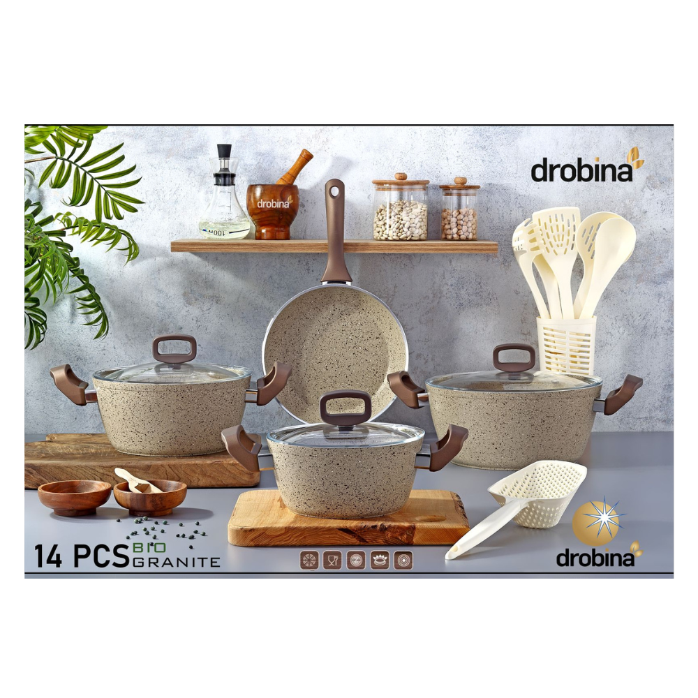 طقم قدور دروبينا 14 قطعة جرانيت تركي Brown drobina