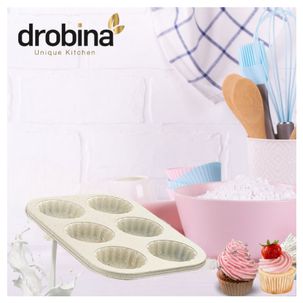 قالب كوب كيك مزخرف من دروبينا مصنوع من مواد عالية الجودة , مصممة لتبقى معك وتدوم طويلا, يمكنك صنع 6 حبات من الحلوى المزخرفة التي تردين , حواف سميكة ومتينة لضمان نضوج الكيك وحصولك على طقم رائع, مزود بطبقة مقاومة للبهت او تآكل اللون, يمكنك ازالة الحلى الخاص بك بسهولة من القالب