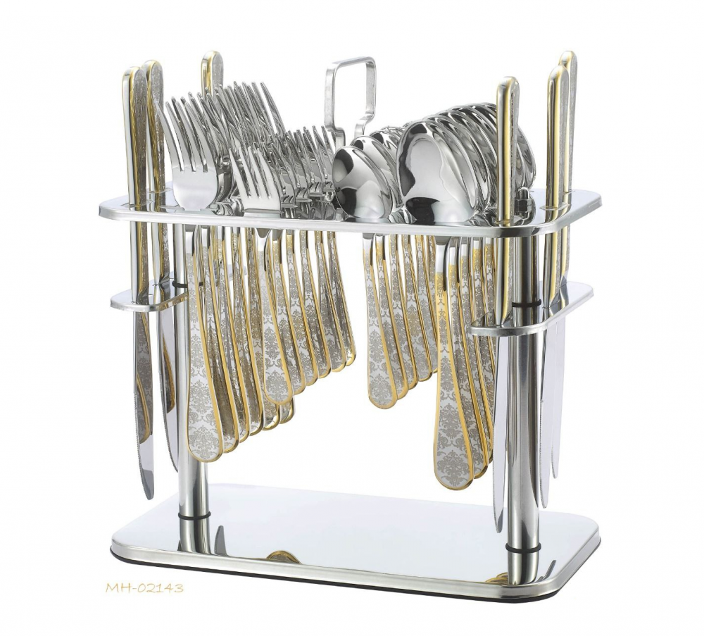 طقم ملاعق من دروبينا مصنوع من الستانلس ستيل الفاخر, مثالي للتقديم والاستعمال اليومي, مُصممةٌ بنمط عصري وعملي لتلبية احتياجاتك المختلفة في جميع الأوقات, مجموعة رائعة مكونة من 30 قطعة مع ستاند ستانلس ستيل بمقبض لسهولة الحمل.