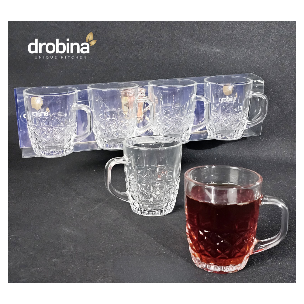 طقم كاسات شاي من دروبينا مصنوع من زجاج كريستال شفاف عالي الجودة، مما يضمن المتانة وتجربة شرب فائقة.