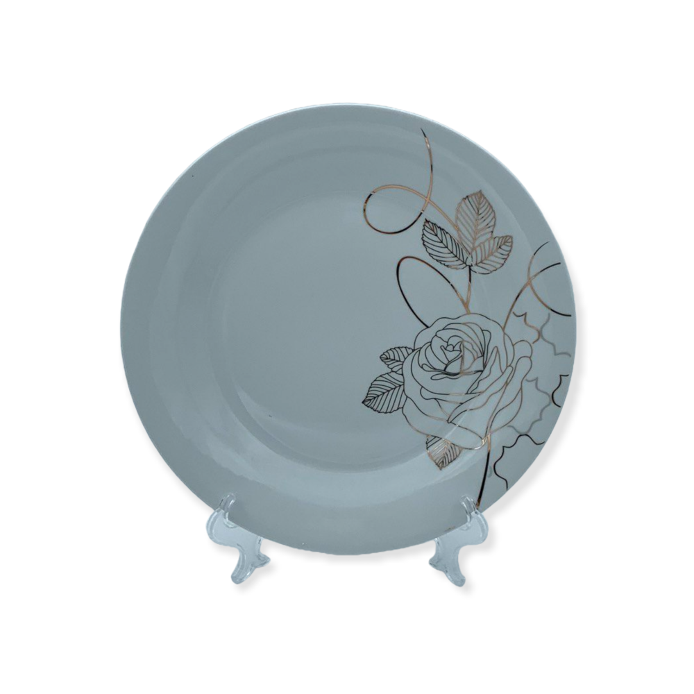 6 صحون تقديم - 6 صحون عميقة - 6 زبادي حساء - 6 صحون وسط - عدد 2 صحن سيرفس - عدد 1 إبريق شاي مع غطاء - 6 أكواب شاي - 6 صحون أكواب