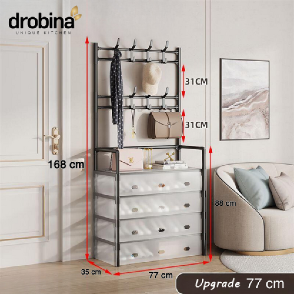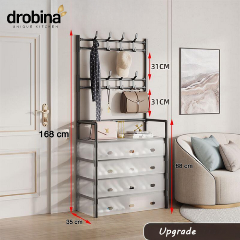 رف ملابس أرضي متعدد الوظائف من دروبينا متكون من 5 طبقات للمعاطف والأحذية، منظم أحذية بمعاطف الرواق من 4.5 مستويات مع أرفف تخزين و8 خطافات تعليق للأحذية والأوشحة والشنط والقبعات والمظلات