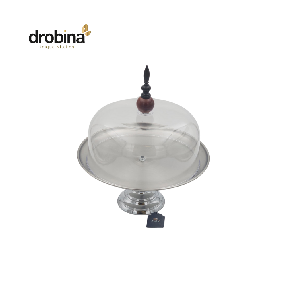 صحن حلويات و كيك بغطاء شفاف وقاعدة فضية: