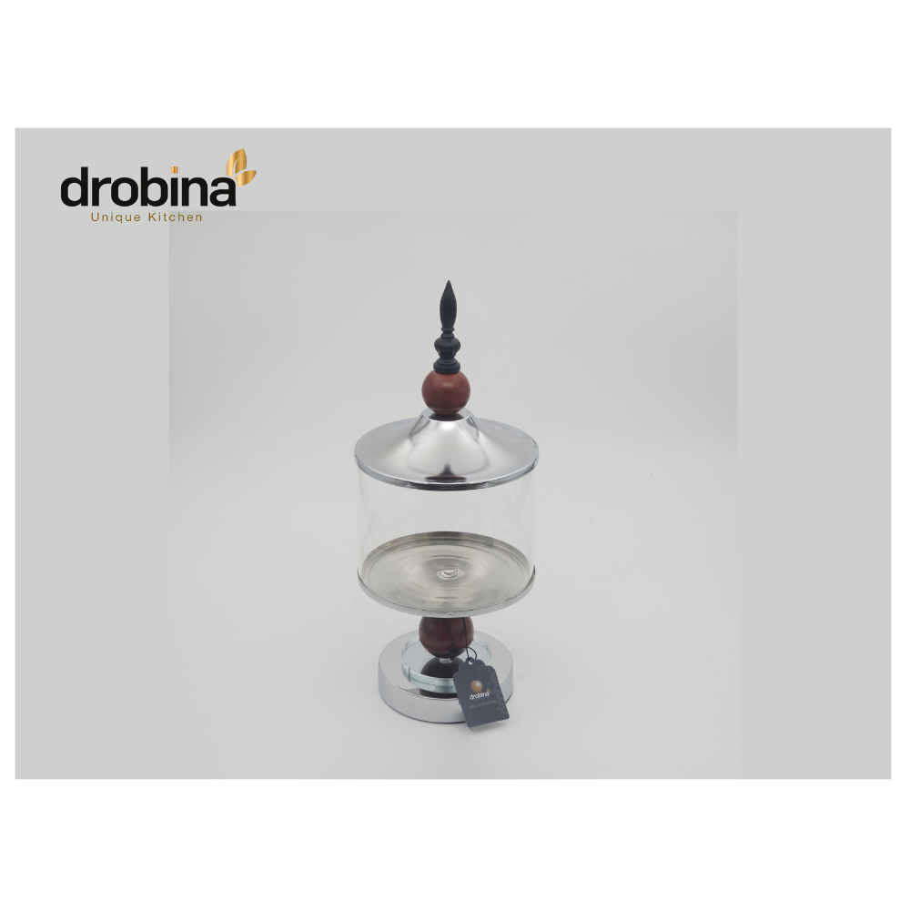 صحن حلويات و كيك بغطاء شفاف وقاعدة فضية