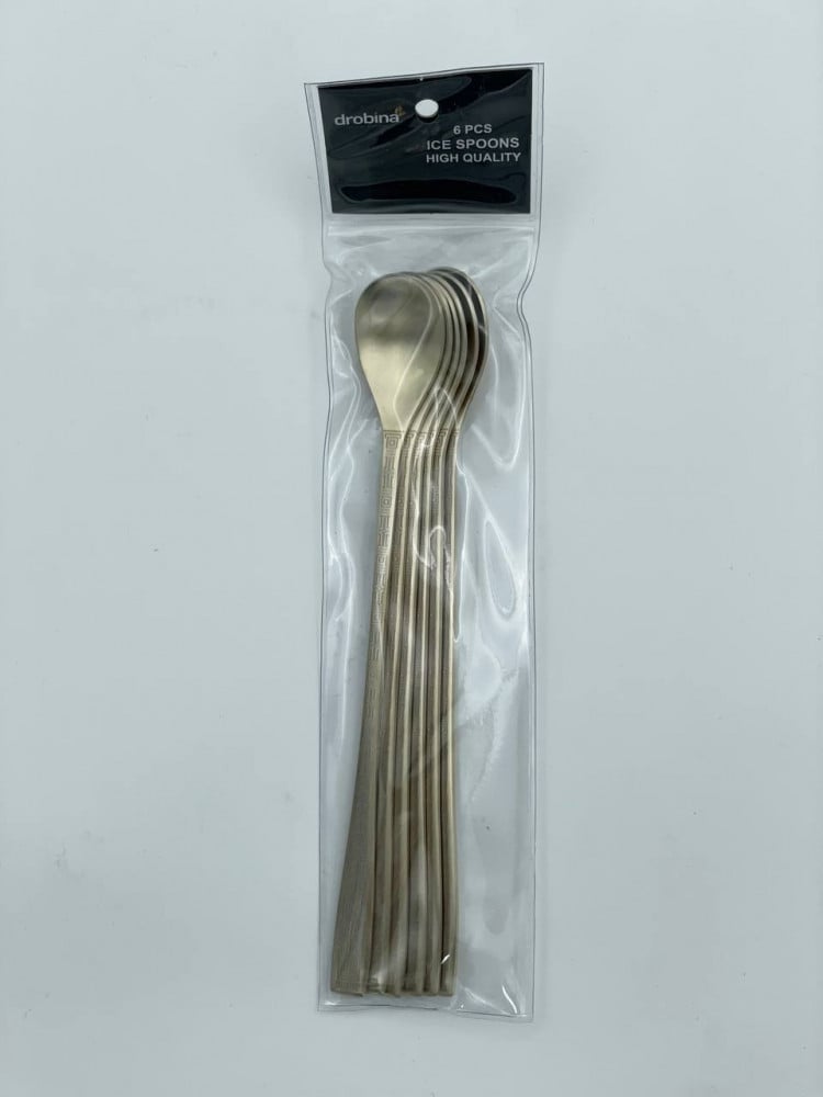 ملاعق ايس كريم من دروبينا مصنوع من الستانلس ستيل الفاخر, مصمم بجودة عالية للإستخدام اليومي ويدوم طويلا, شكل مميز وطبقة لامعة تضفي مظهرا أنيقا على مائدتك, المقابض مصممة بعناية تمنحك قبضة مريحة غير قابلة للإنزلاق.