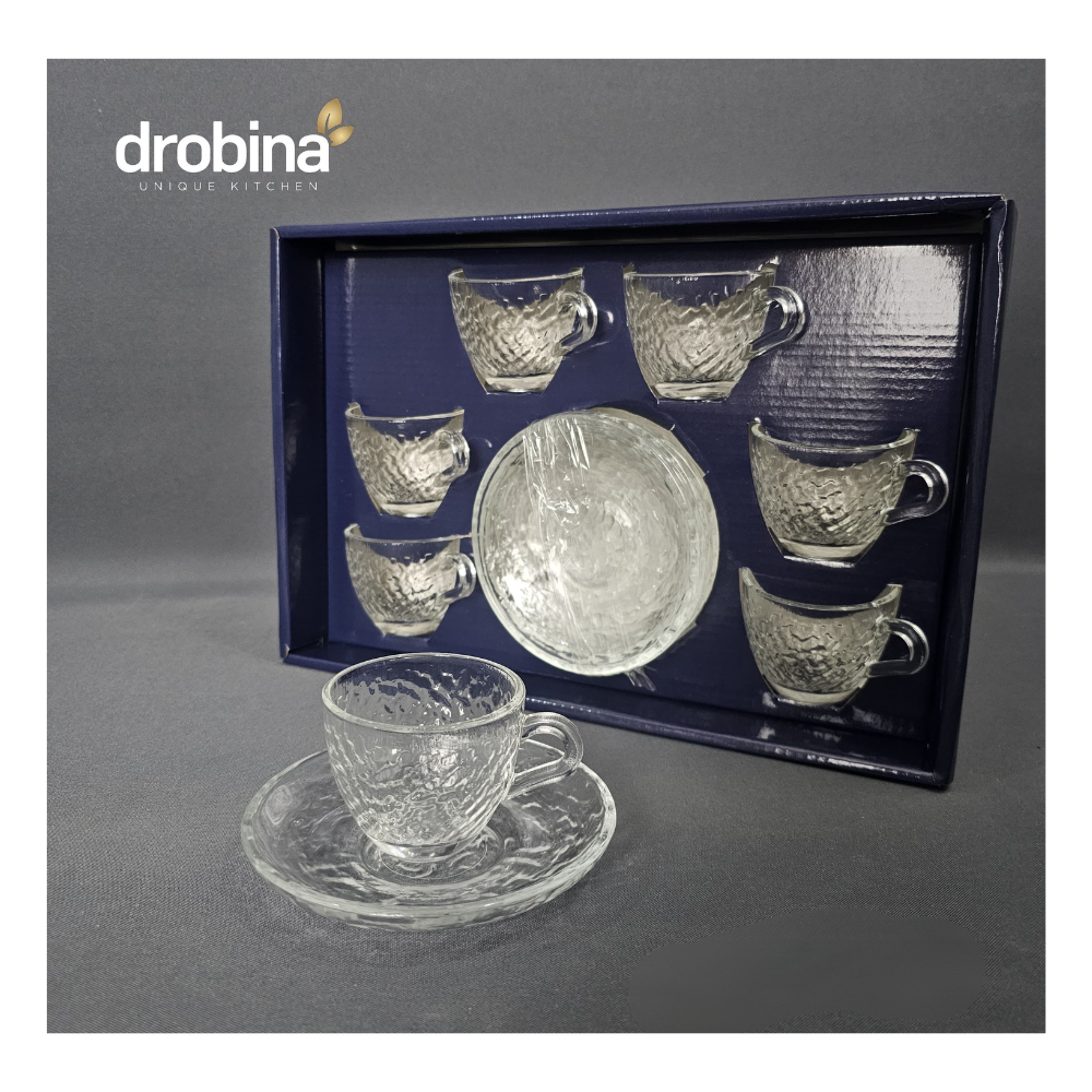 طقم فناجين قهوة تركي من دروبينا مصنوع من زجاج كريستال شفاف مكون من 12 قطع مصنوع من زجاج عالي الجودة، مما يضمن المتانة وتجربة شرب فائقة.