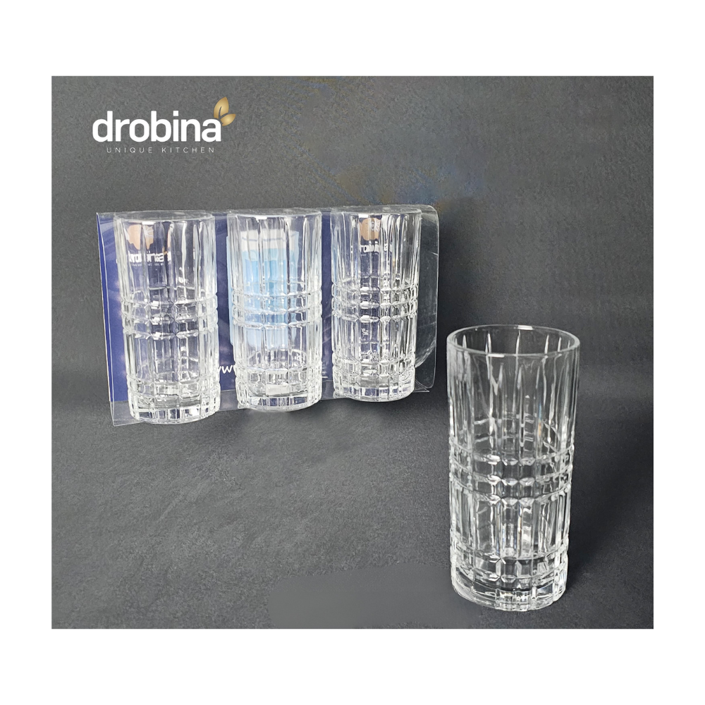 طقم كاسات عصير زجاج كريستال 3 حبة شفاف drobina