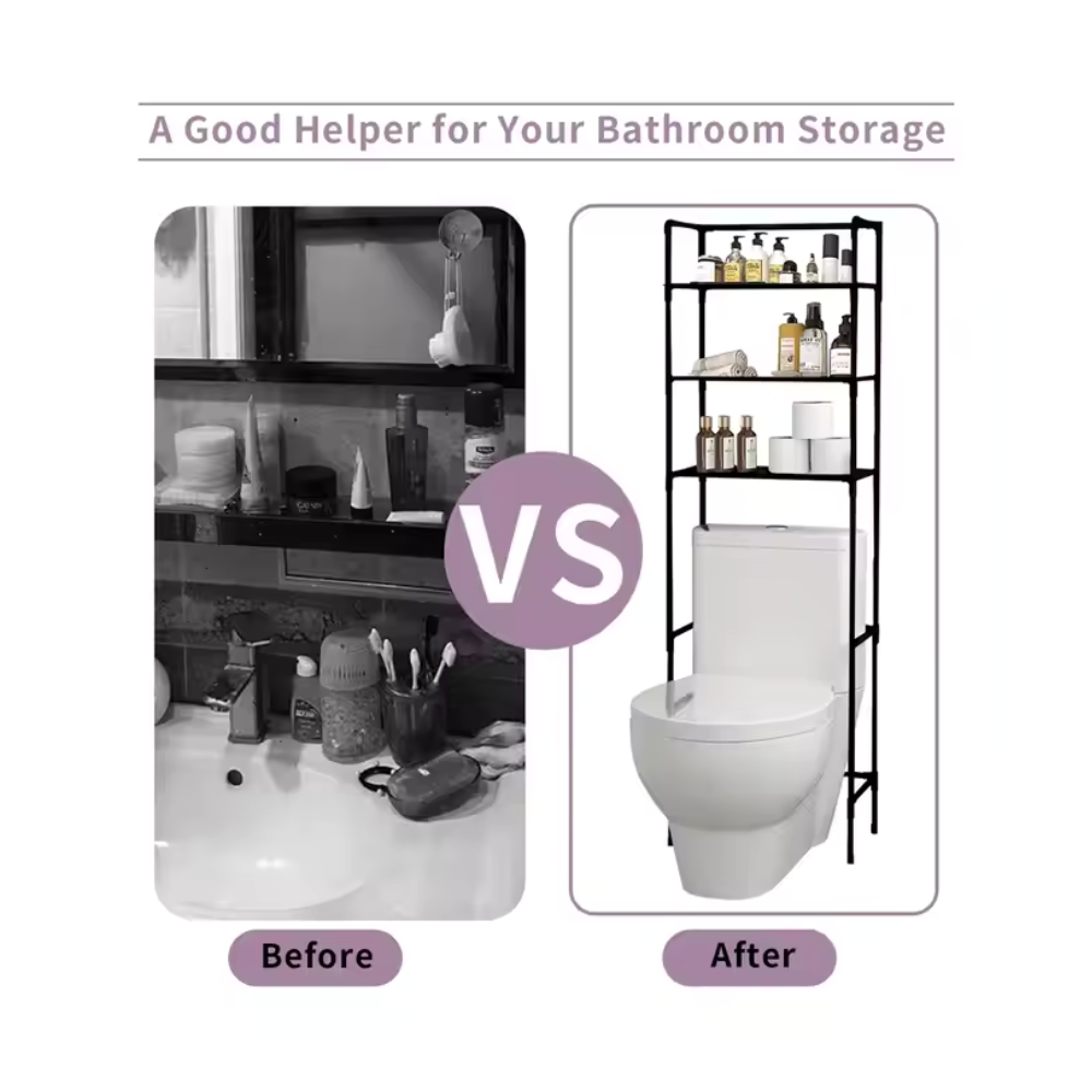رف حمام مكون من 3 طبقات فوق المرحاض من هوكتيون، منظم حمام متعدد الوظائف موفر للمساحة، رف مرحاض معدني قائم بذاته مع خطاف، رفوف الحمام، يمكن تثبيته.