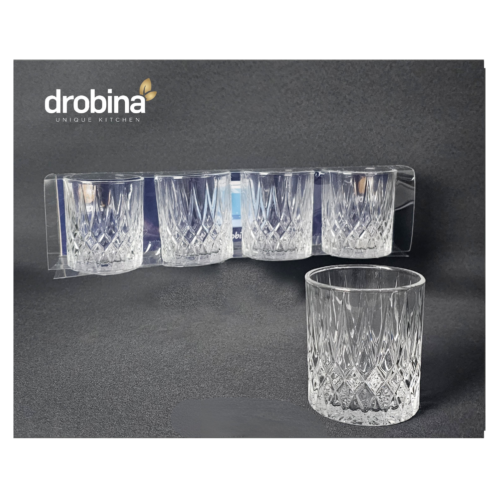 طقم كاسات عصير زجاج كريستال 4 حبة شفاف drobina